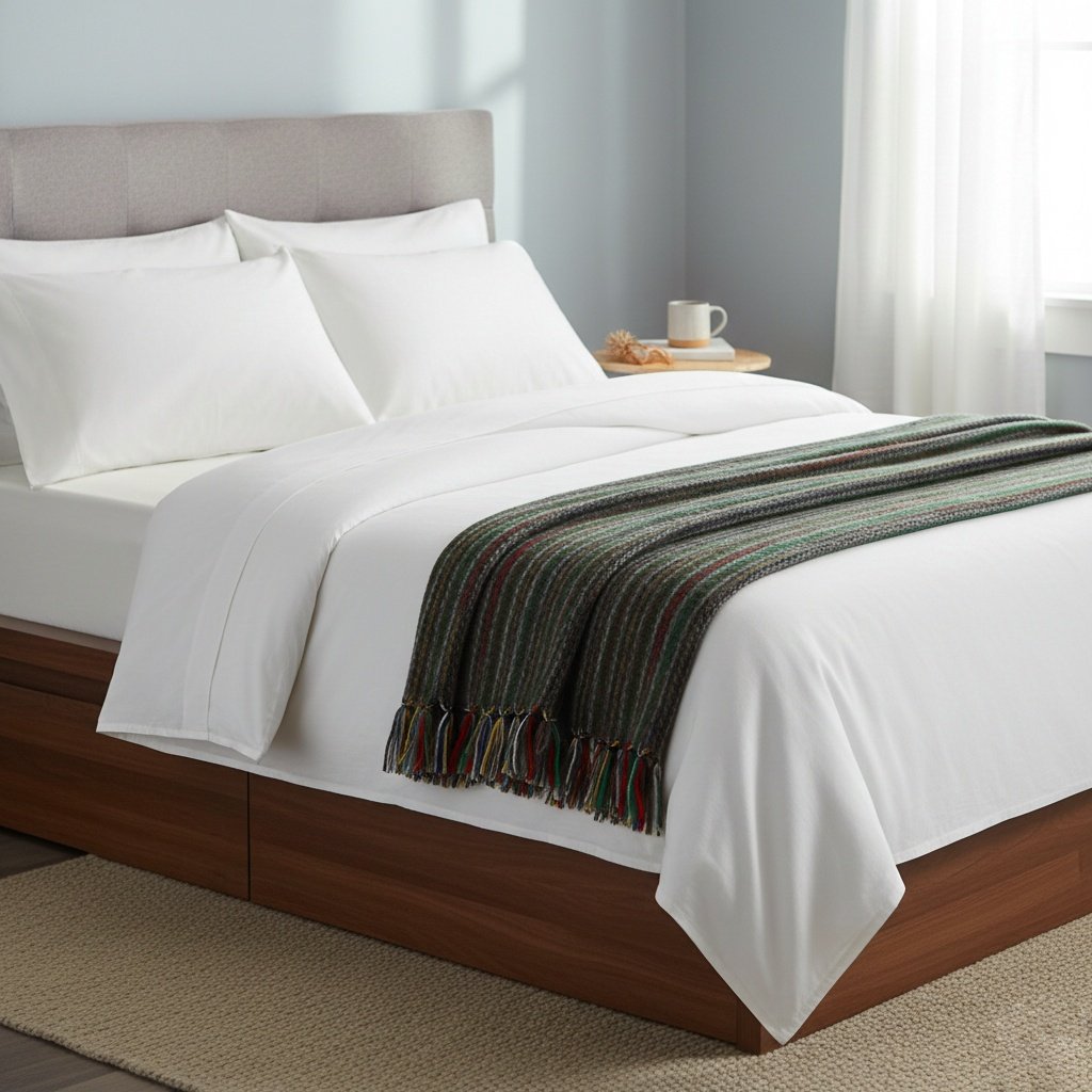 Cobija elaborada por artesanos boyacenses en telar artesanal.