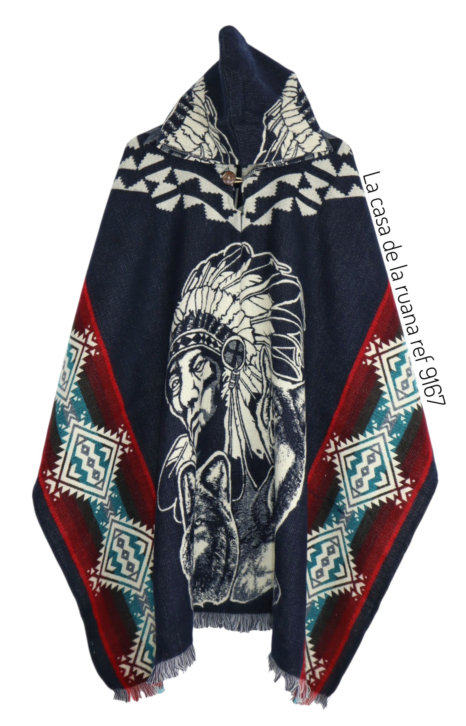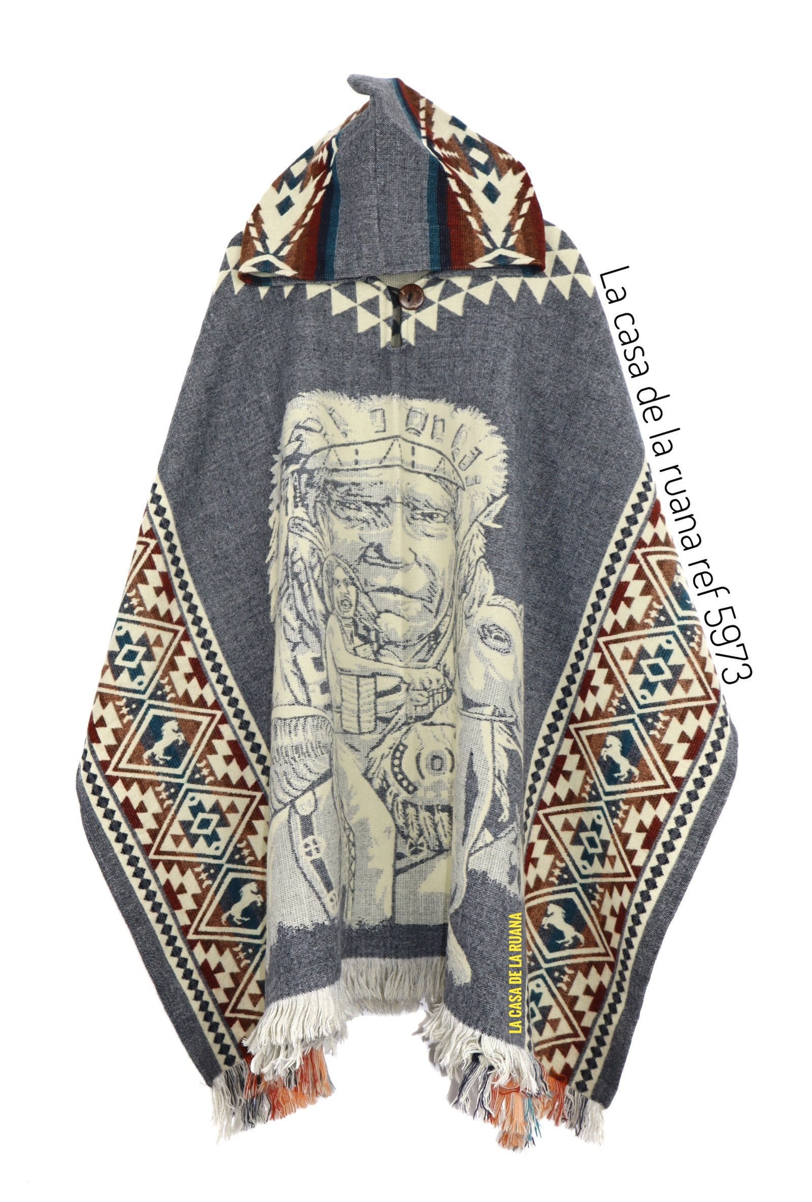 Maxiruana Poncho Lana Alpaca Con Capota De Indio.