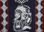 Diseño con figura de piel roja, lobos y águila