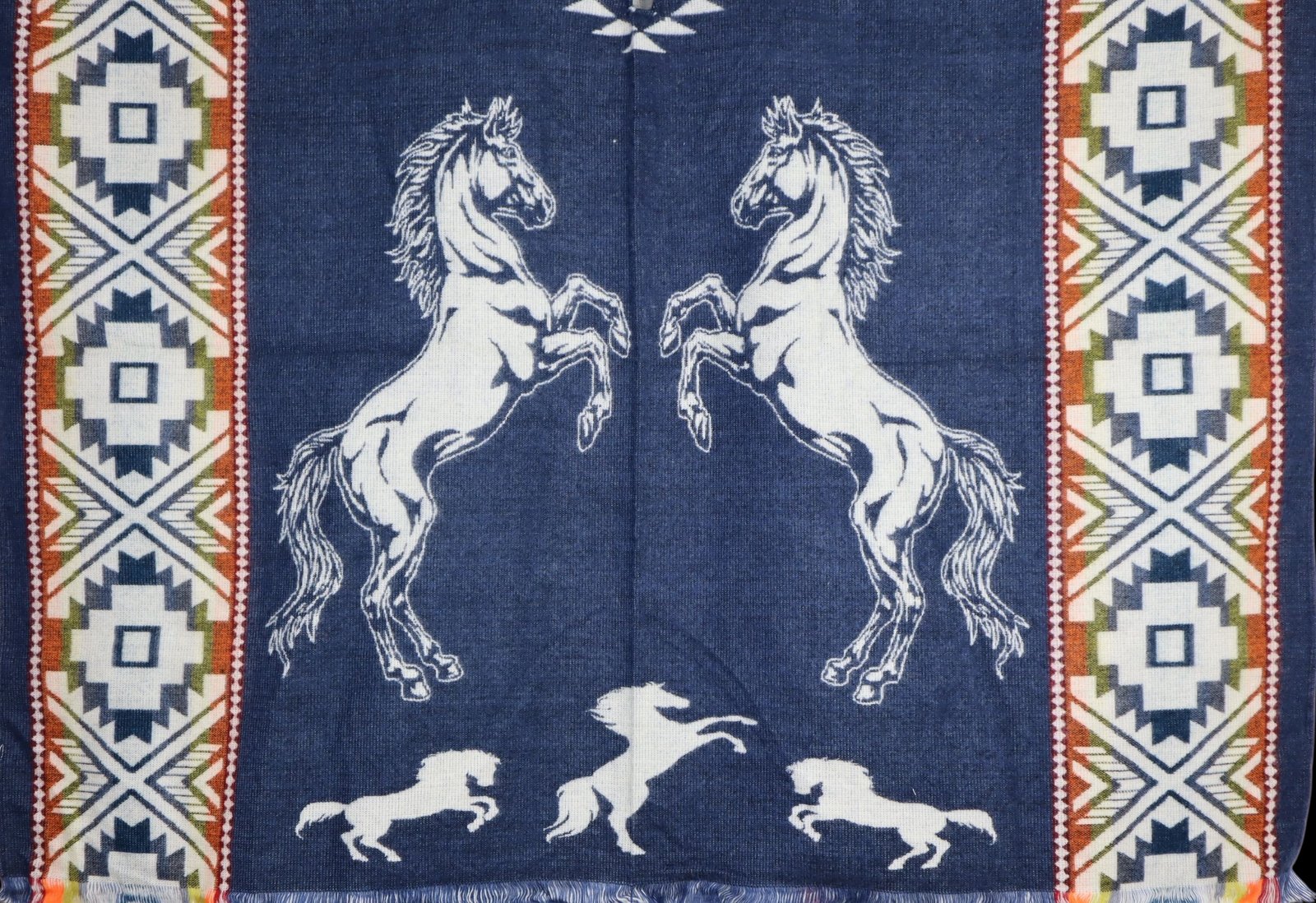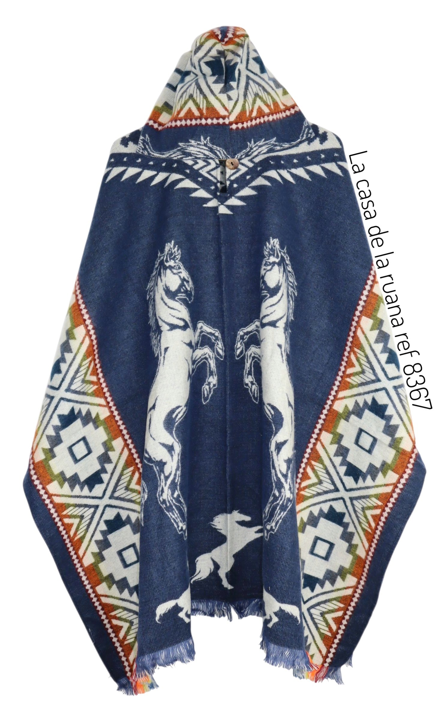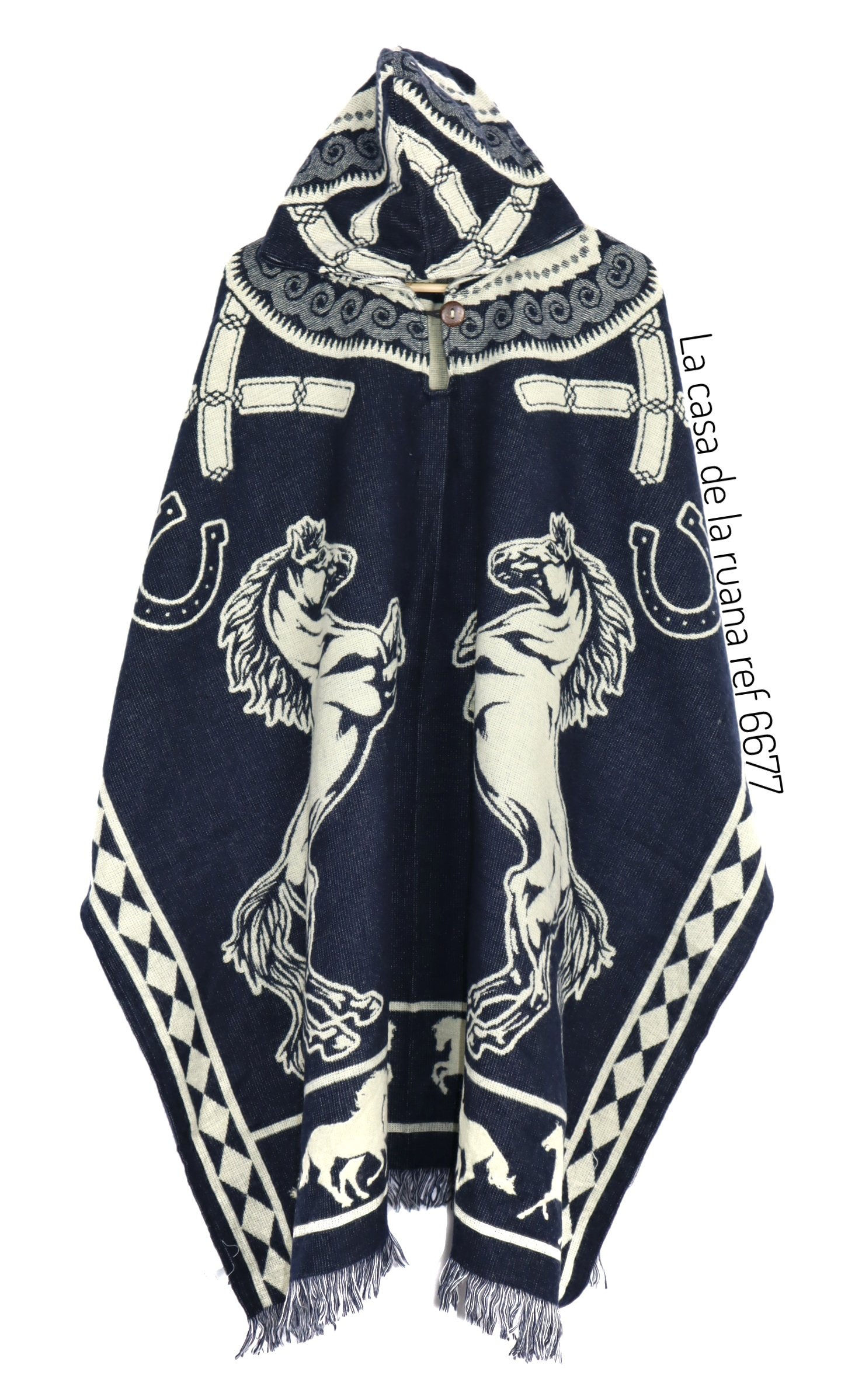 Maxiruana Poncho Lana Alpaca Con diseño de Caballos con capota
