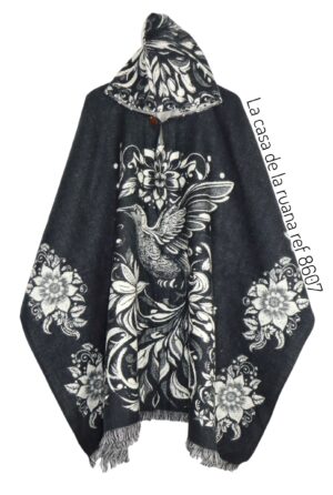 Maxi Ruana En Lana Alpaca Con Diseño De Colibrí $ 133.000