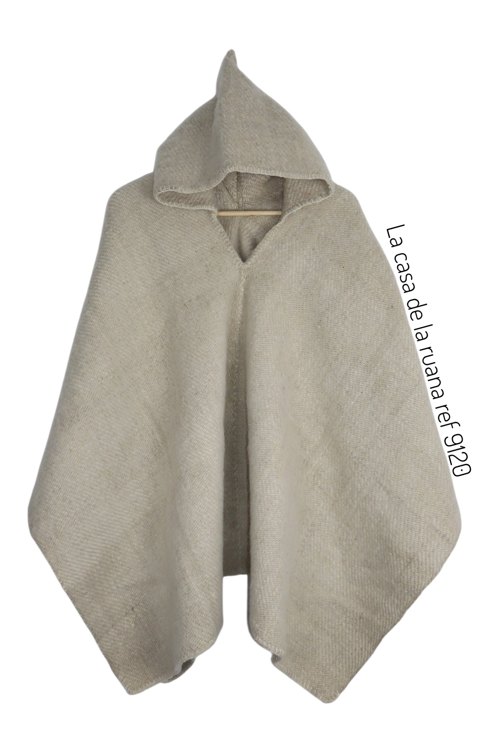 Las ruanas en lana de oveja 100% presentan características únicas que las diferencias de otros materiales. El color (huele aún a oveja), el color (no es uniforme totalmente, al igual que el cabello humano tiene hebras más claras o más oscuras) y por último la textura (un poco áspera al tacto).