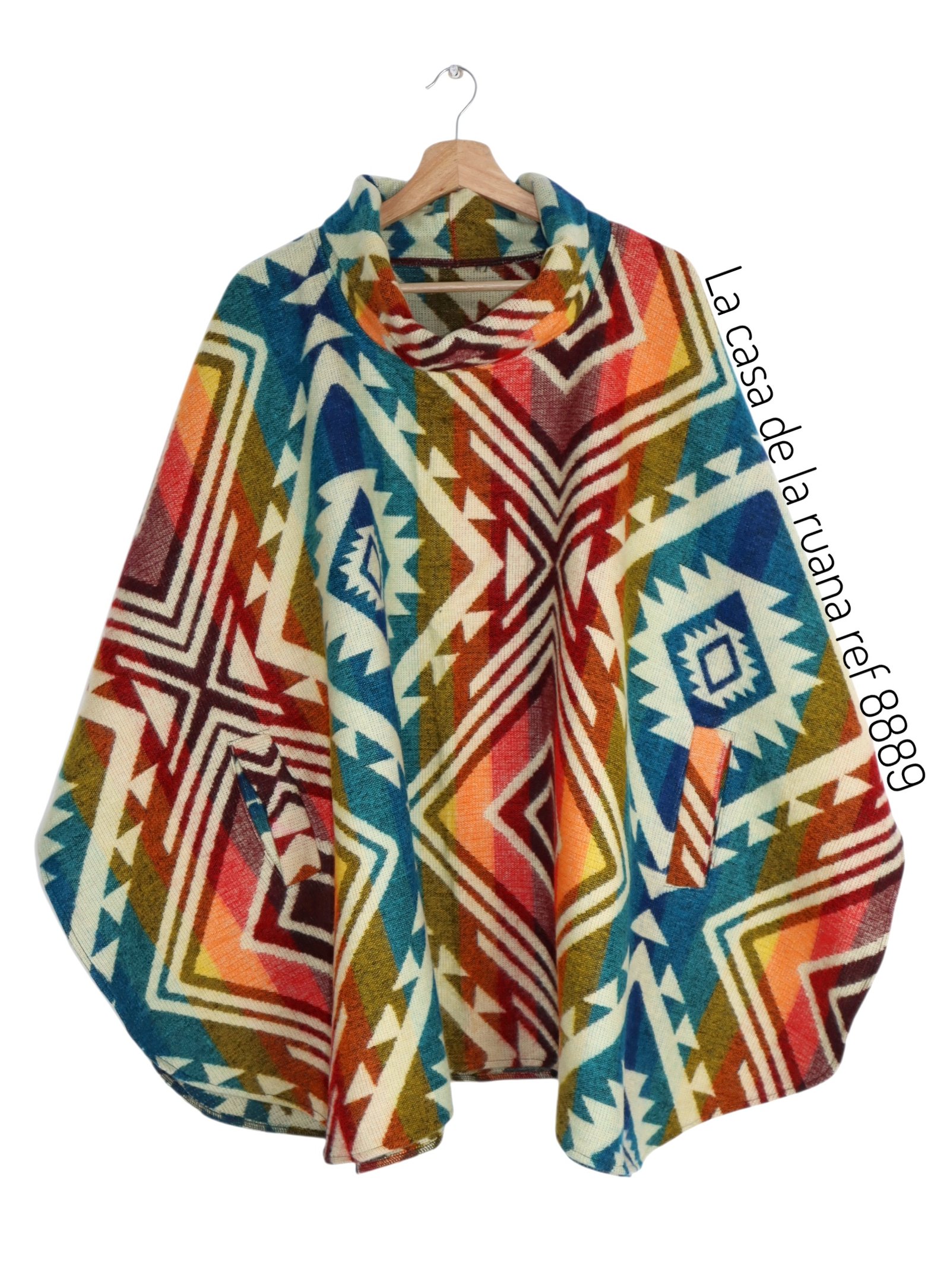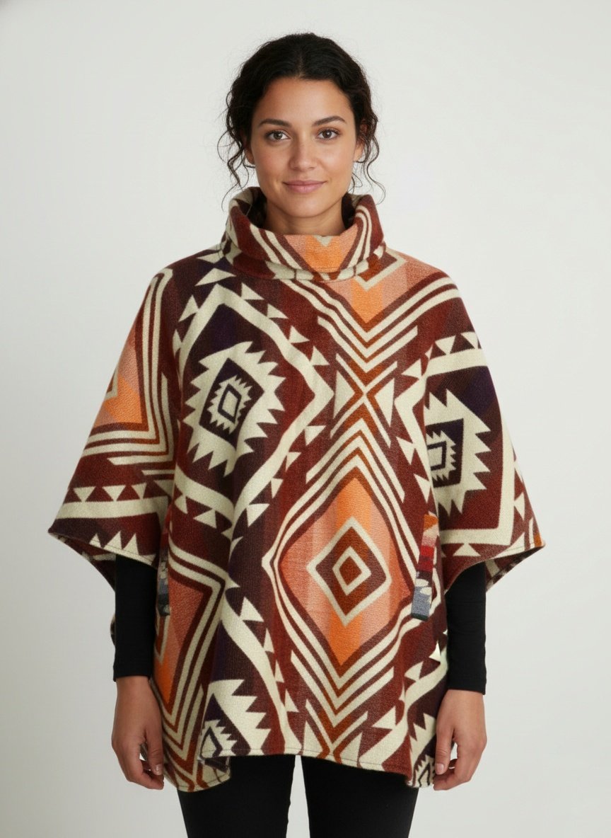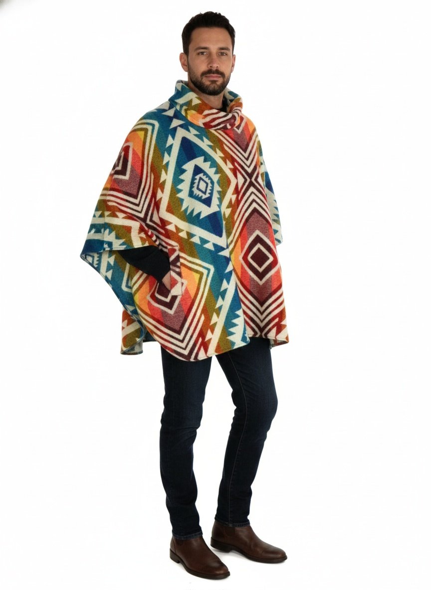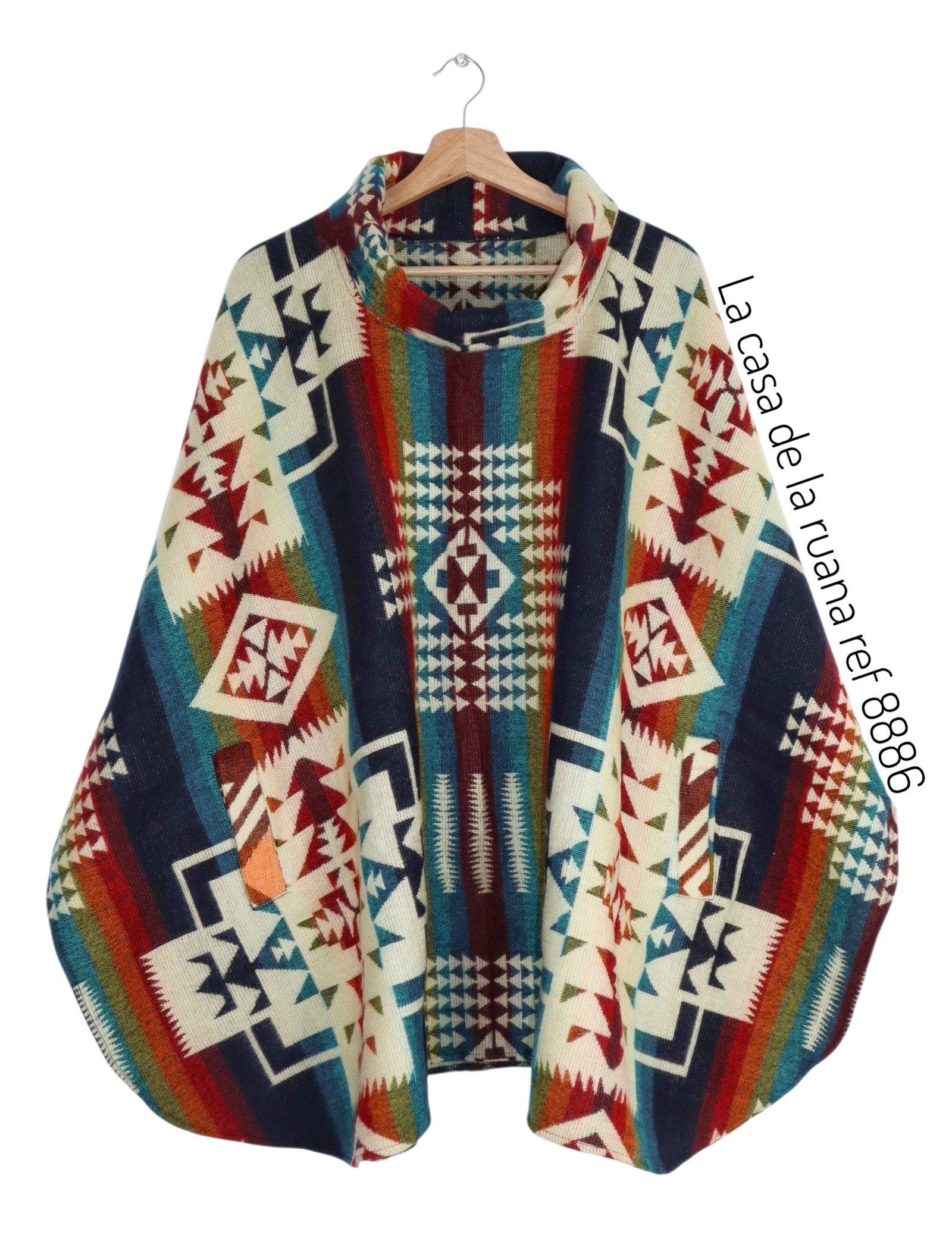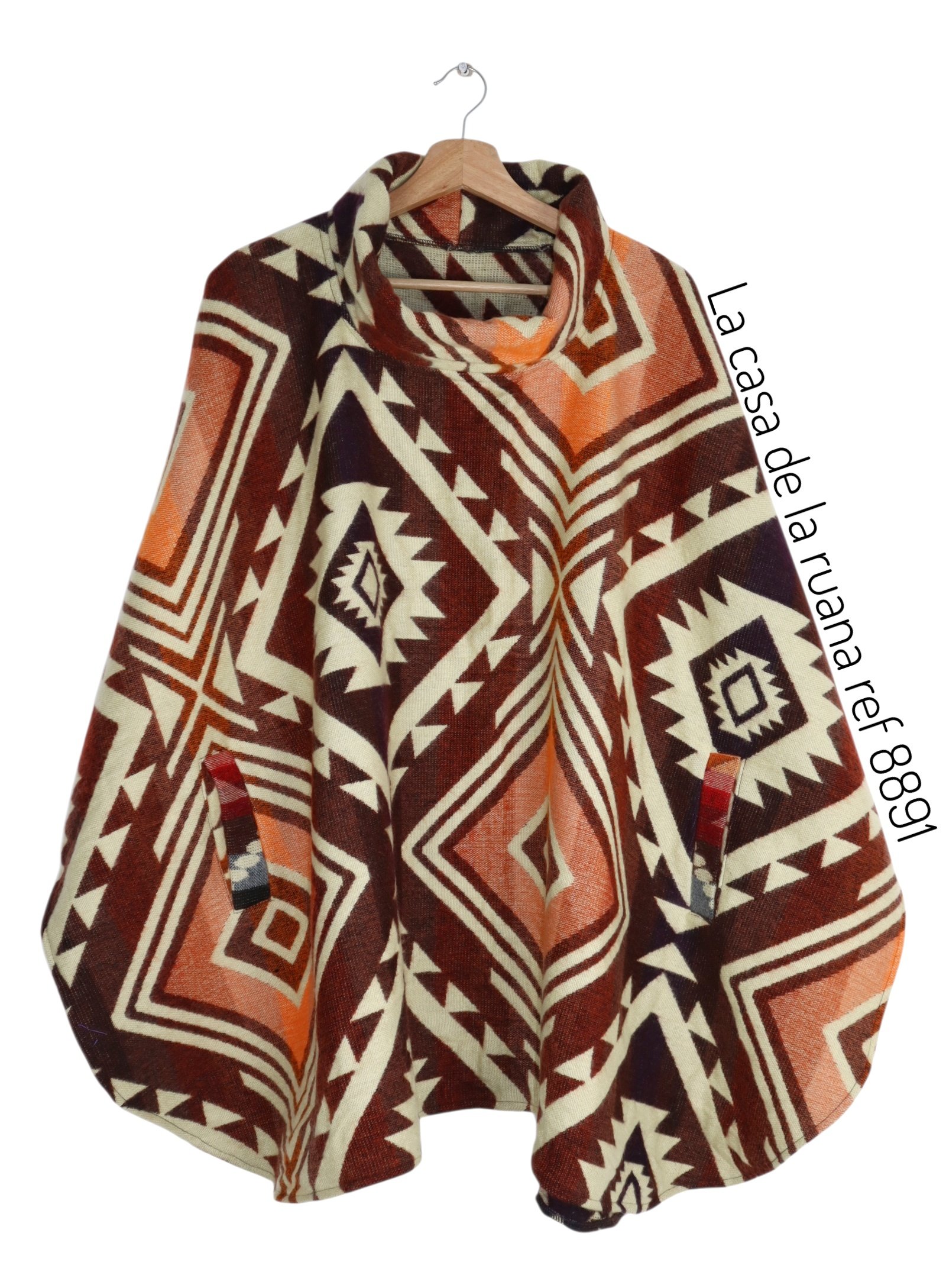 Ruana Poncho Lana Alpaca Con Cuello Y Bolsillo