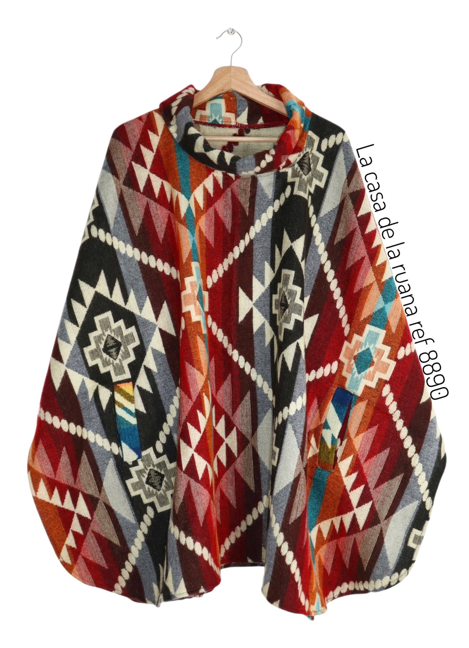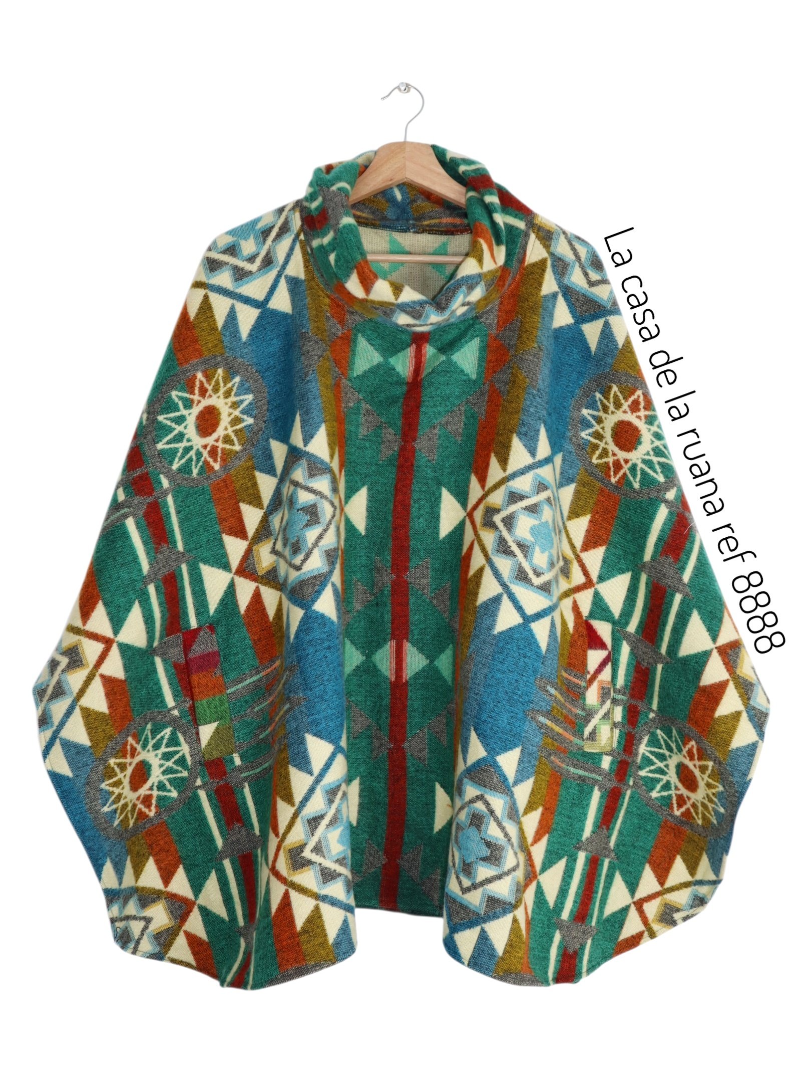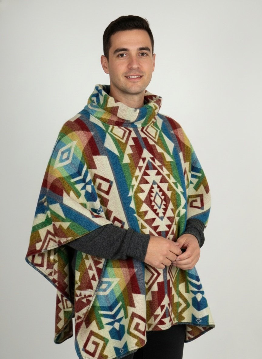 RUANA EN LANA ALPACA CON CUELLO Y CAPOTA.