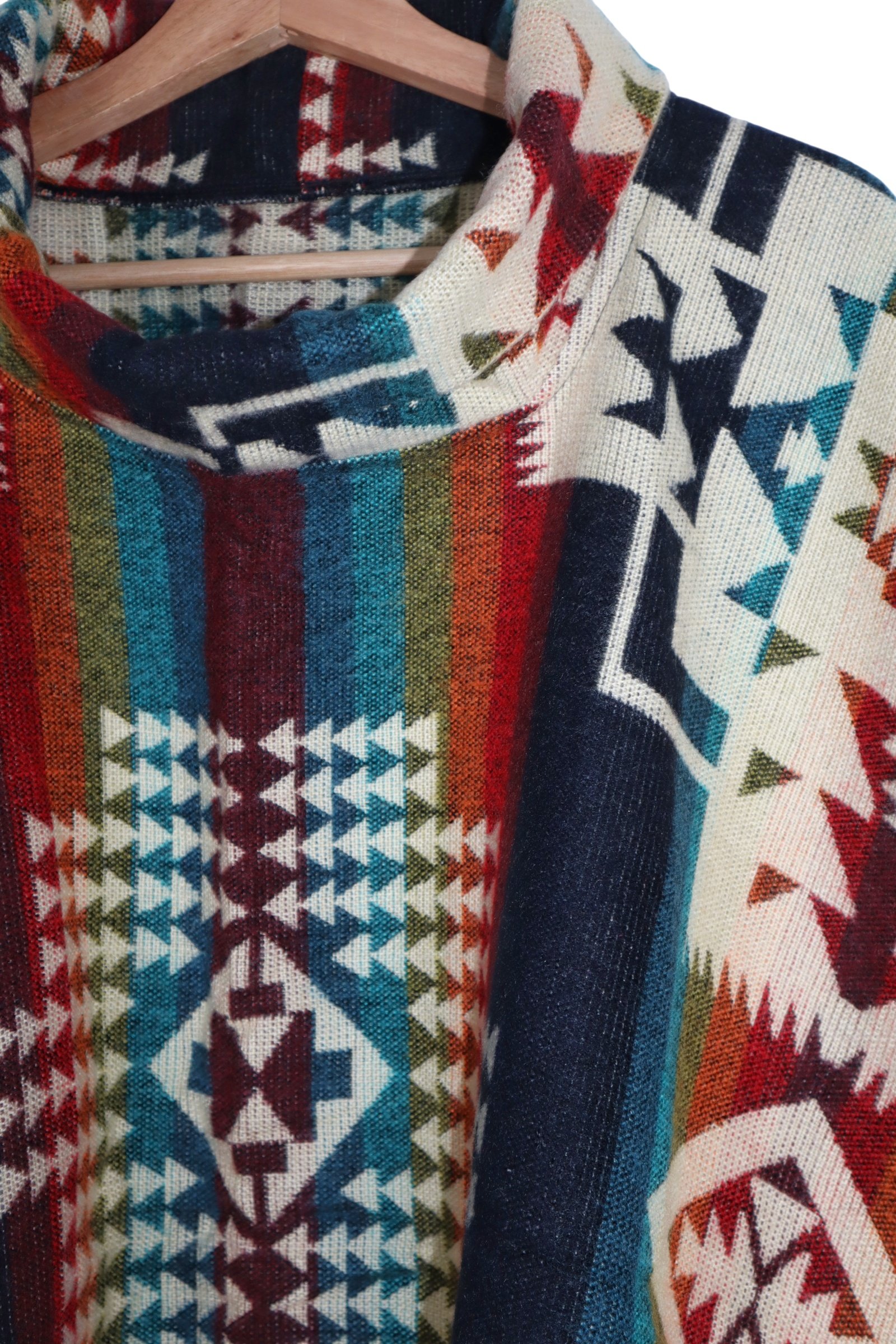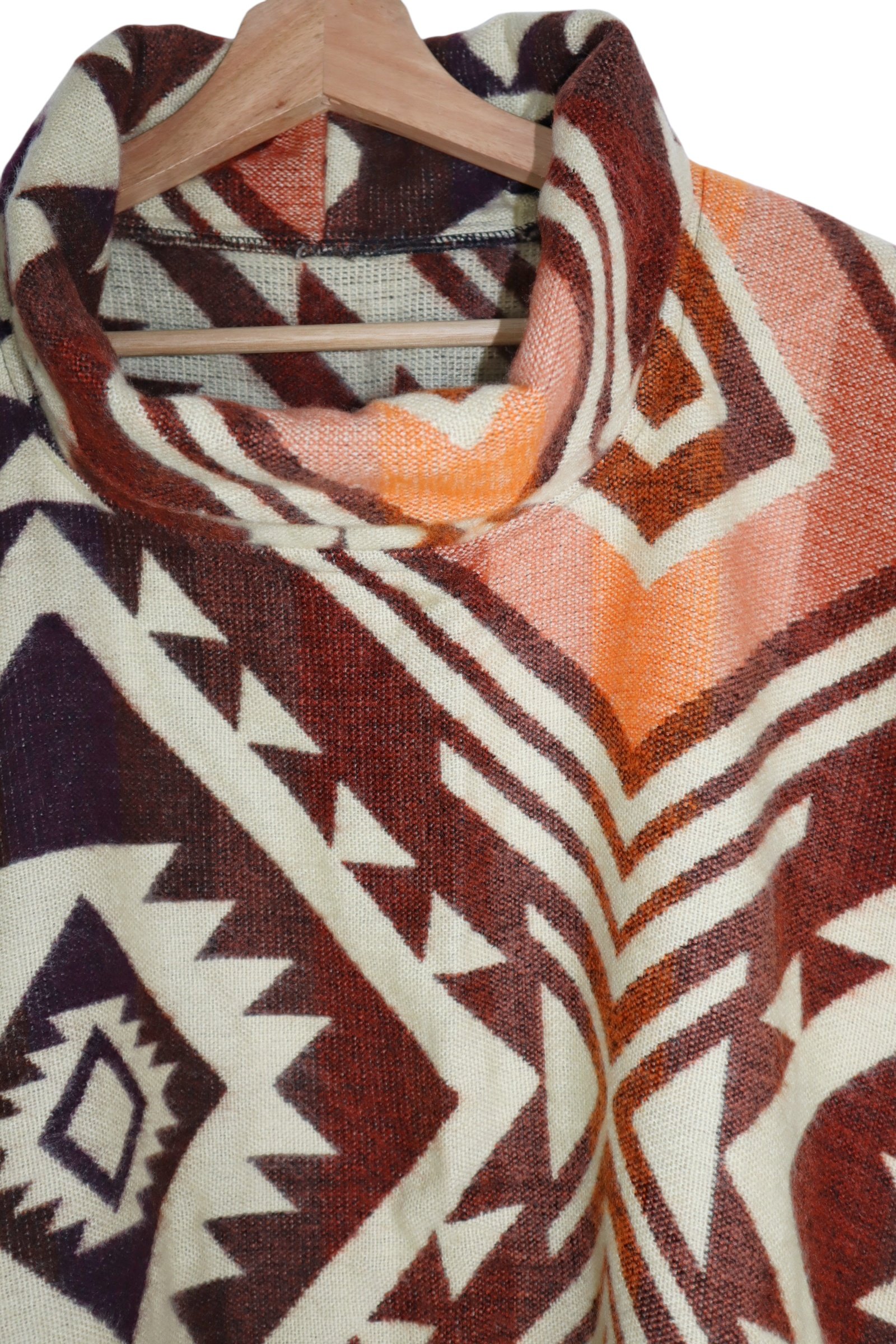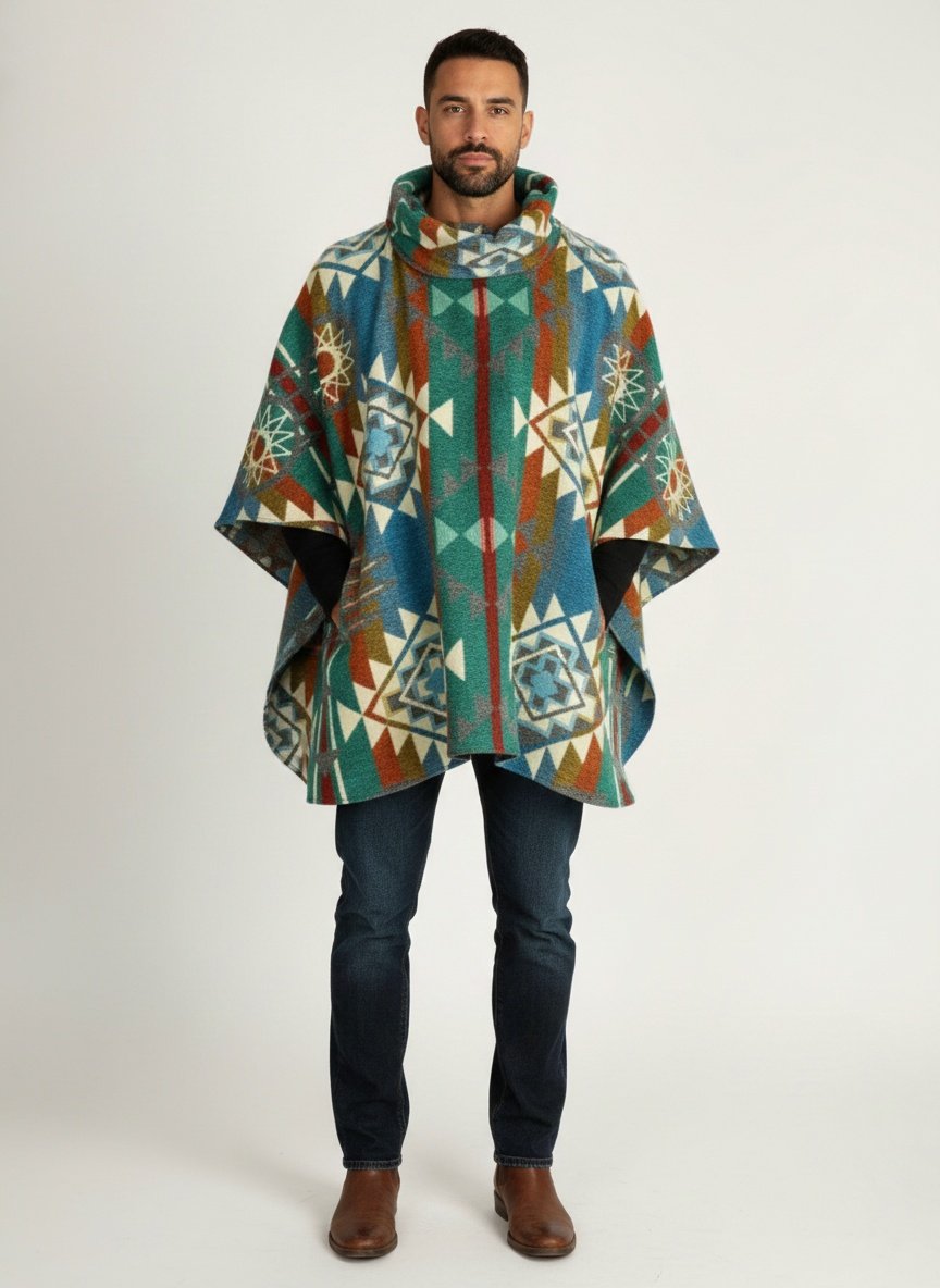 RUANA EN LANA ALPACA CON CUELLO Y CAPOTA.