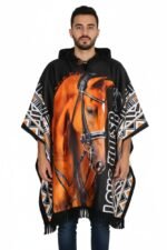 Ruana Sublimada Con Diseño De Caballos Con Capota