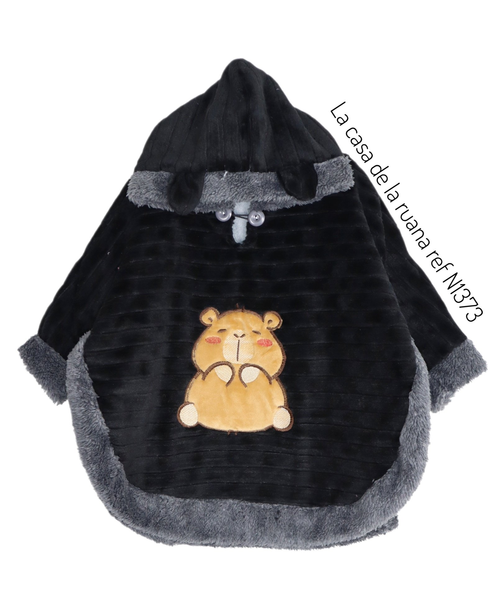 Las ruanas de la talla 2 a la talla 10 son forradas en su interior y tienen orejitas en la capota.