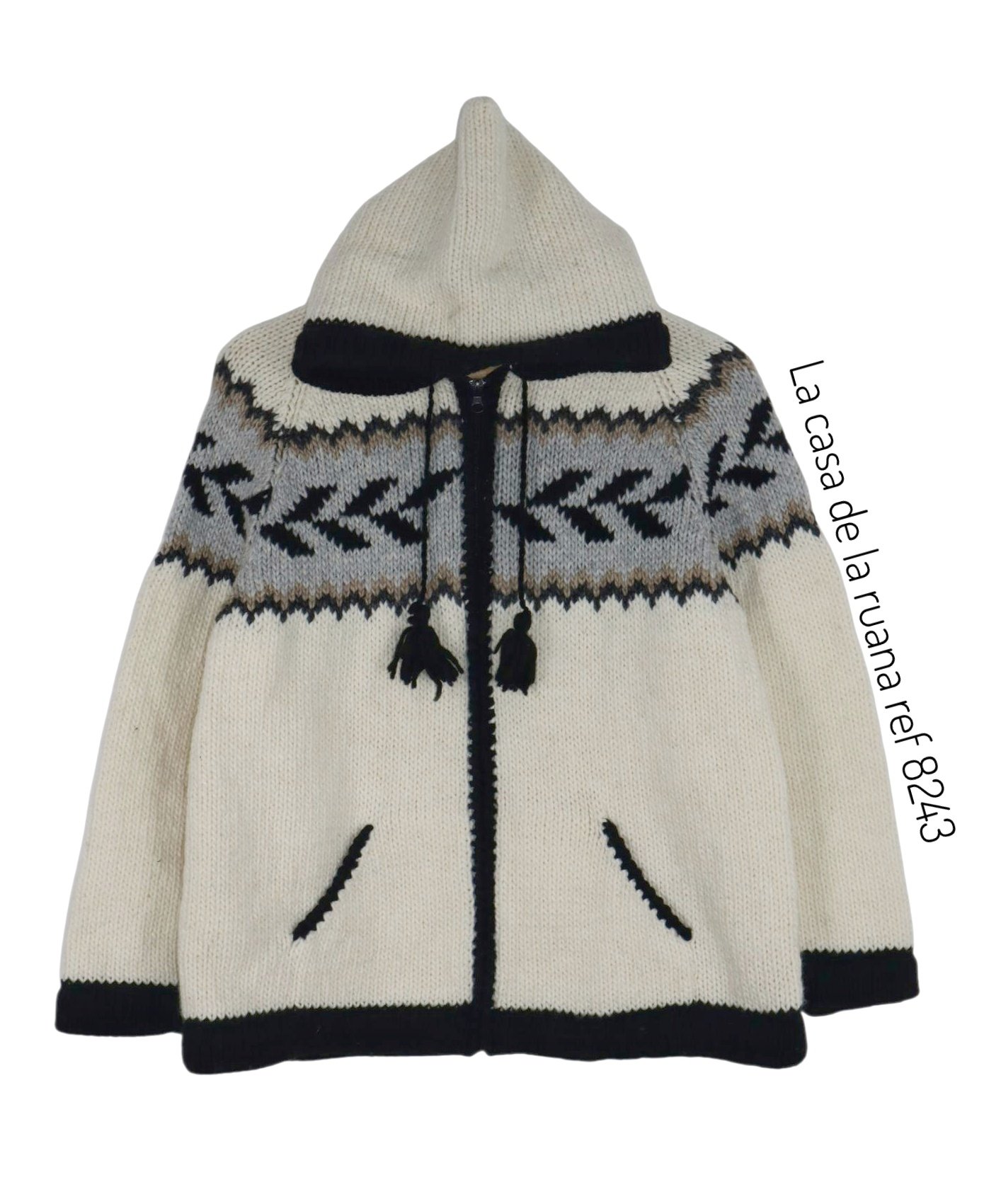 Saco Suéter Chaqueta Tejida En Lana De Oveja Con Capota